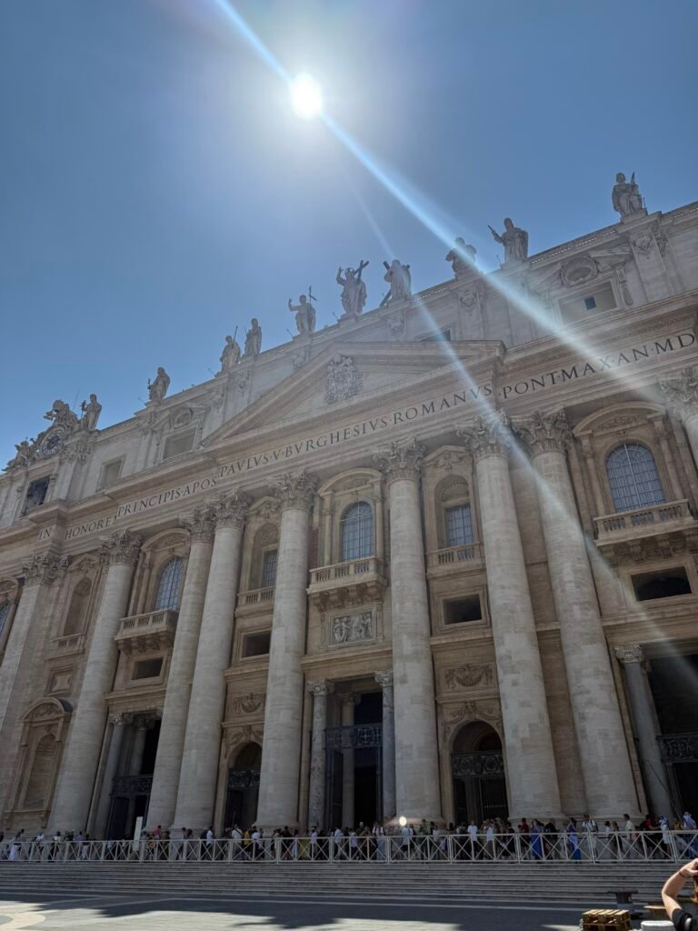 Walking into St. Peter’s Square is hard to describe. Everything feels massive. Inside St. Peter’s Basilica, the ceilings stretch higher than you expect and the detail is everywhere. It is so large that the entire Statue of Liberty could fit inside it, pedestal included.